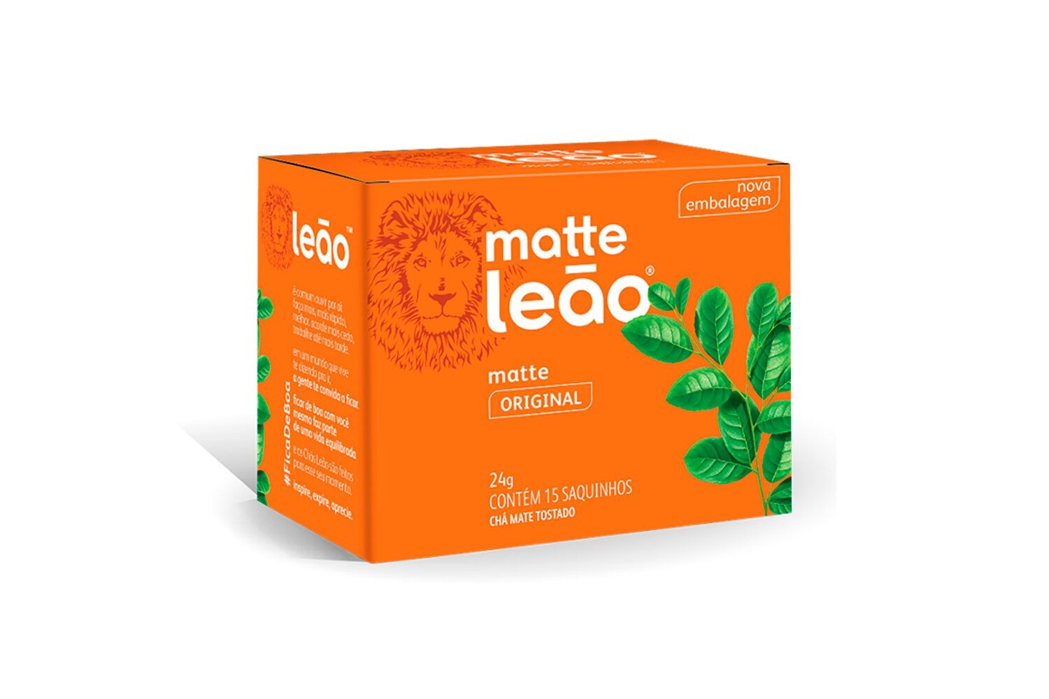 O Chá Leão Matte Natural é o primeiro e mais tradicional produto da Leão carrega décadas de história. É preparado a partir das folhas e talos da erva-mate, planta nativa, especialmente selecionados e tostados para resultar em uma bebida revigorante, de característica única e inigualável. Quente ou gelado, permite inúmeras combinações. Cada caixa contém 15 saquinhos de 1,6g, embalados individualmente. Composição: Folhas de mate tostado ( Illex paragueriensis St. Hil.)