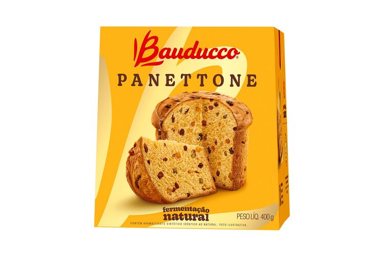 Panettone com Frutas Bauducco Caixa 400g Só o Panettone Bauducco tem a receita original trazida da Itália pelo próprio Sr. Bauducco. Cada fatia do Panettone Bauducco tem a massa molhadinha, macia e o inconfundível sabor do Natal, feito com o mesmo carinho que une as famílias todos os anos.