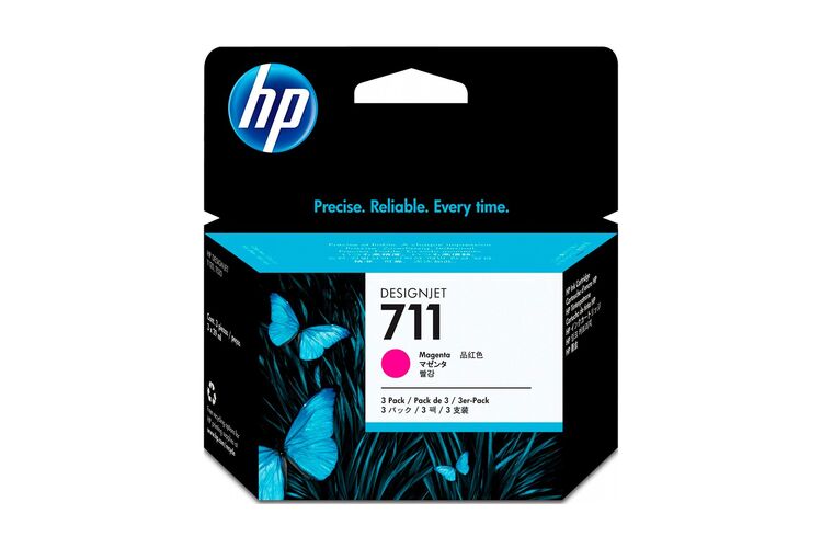 Pacote com 3 Cartuchos de Tinta HP 711 Magenta DesignJet Originais Sku : CZ135AB Cor (Es) Dos Suprimentos De Impressão : Magenta Compatibilidade : Impressoras HP DesignJet T100, T120, T125, T130, T520, T525, T530