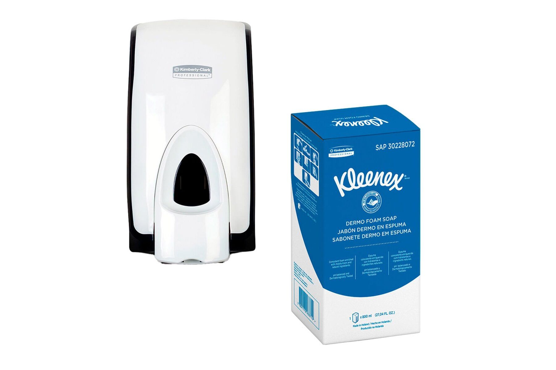 Produto Kimberly-Clark Professional exclusivamente compatível: Sabonete Kleenex Dermo em espuma 800ml e Scott Pure em espuma 800ml – para dispenser manual.