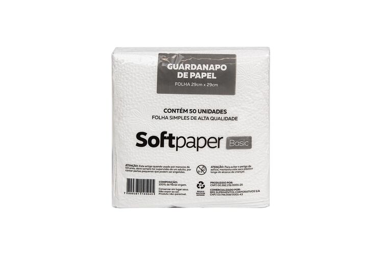 Guardanapo folha simples softpaper 29x29cm contém 50 unidades