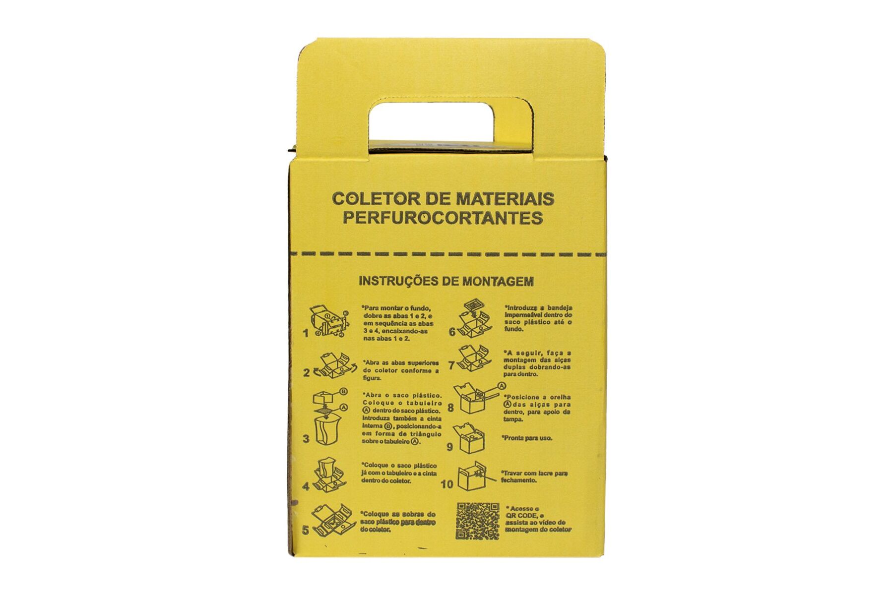 Modo de uso: Coloque o material descartado pela abertura central e feche a caixa deixando ambas as alças para fora a fim de facilitar o transporte da caixa. Recomendação: Descarte a caixa em um local apropriado para não contaminar o meio ambiente.