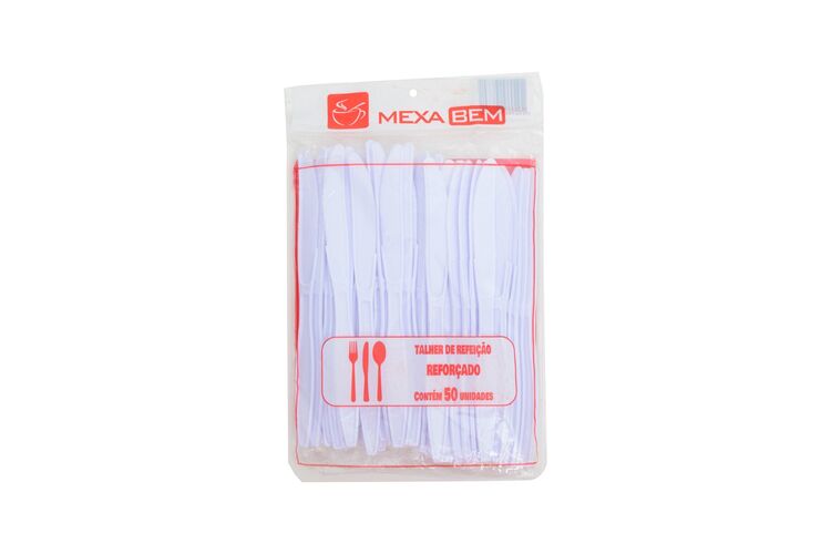 Faca Descartável Branca Reforçada Refeição pacote com 50 unidades