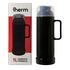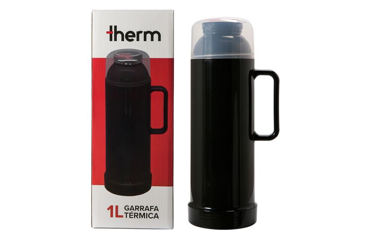 Garrafa térmica plástica Therm com capacidade de 1 litro, possui ampola de vidro, o que garantirá líquidos quentes ou frios por muito mais tempo.