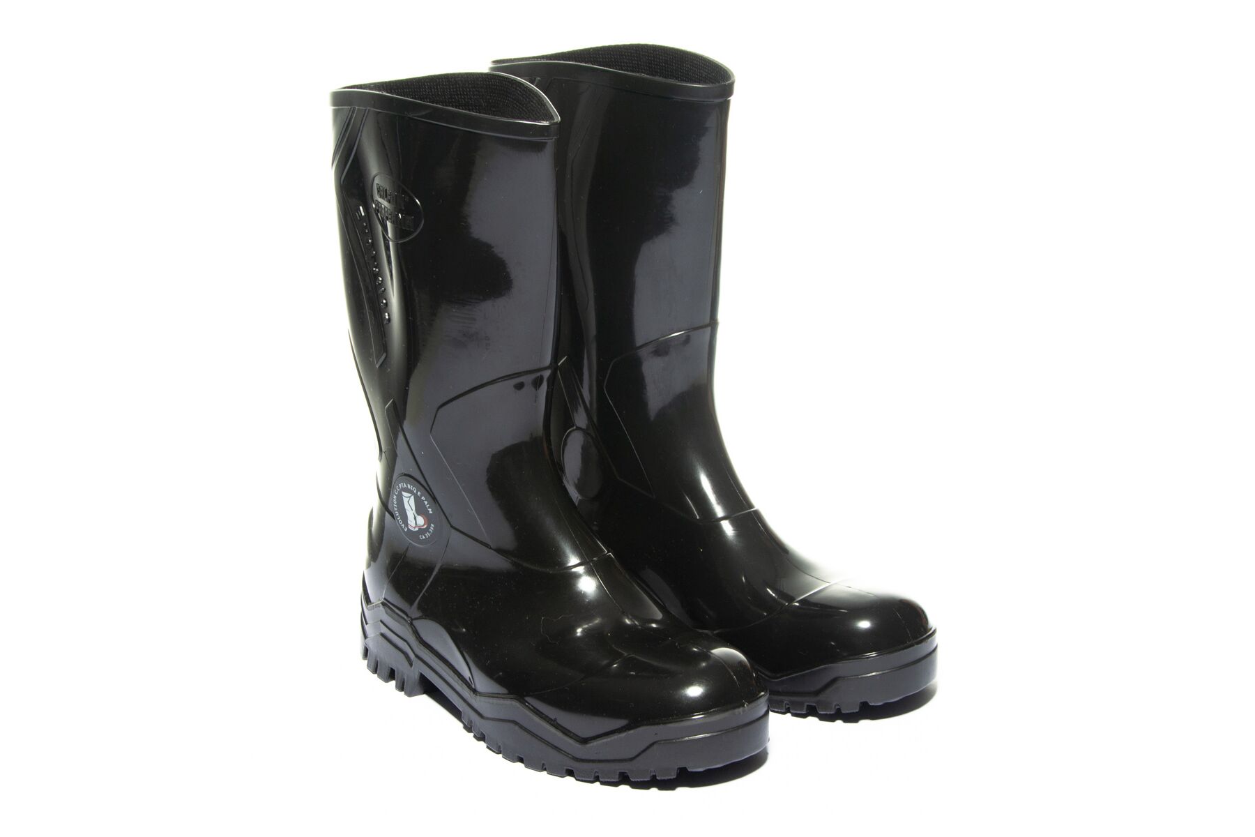 Bota de segurança, confeccionada em PVC, solado antiderrapante, na cor preta. Acabamento interior com meia de poliéster, com biqueira de aço. Certificado de Aprovação: 45224