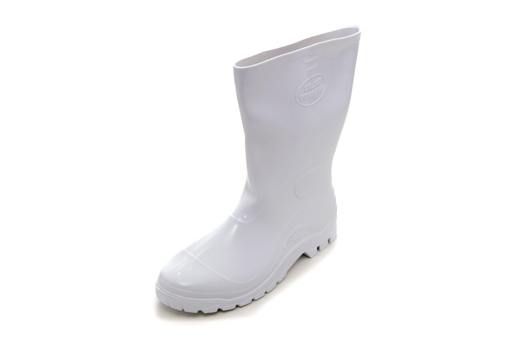 Calçado ocupacional, tipo bota, confeccionado em PVC, injetado impermeável, solado antiderrapante. Acabamento interior com meia de poliéster na cor branca, para a bota branca, e com meia de poliéster na cor preta, para a bota preta. Certificado de Aprovação: 44617