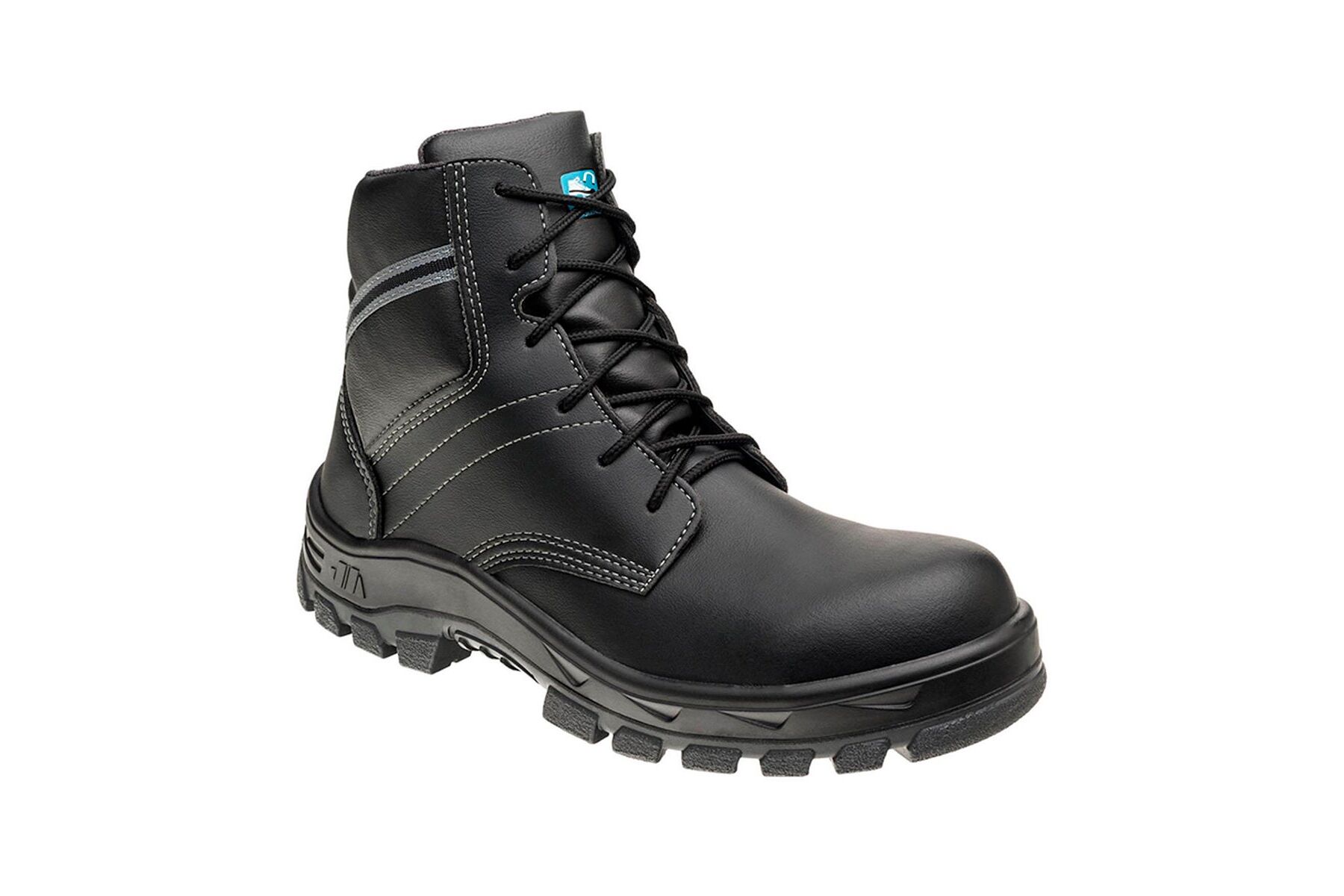 Calçado de segurança tipo bota, fechamento em cadarço, confeccionado em microfibra, palmilha de montagem em fibras não metálicas resistentes à perfuração, costurada pelo processo strobel, forro interno em tecido, solado de poliuretano bidensidade injetado diretamente no cabedal, biqueira de composite, resistente à absorção de energia na região do calcanhar e à passagem de corrente elétrica. Restrição: PARA TRABALHOS COM BAIXA TENSÃO (ATÉ 500 V) EM AMBIENTE SECO. Certificado de Aprovação: 34550