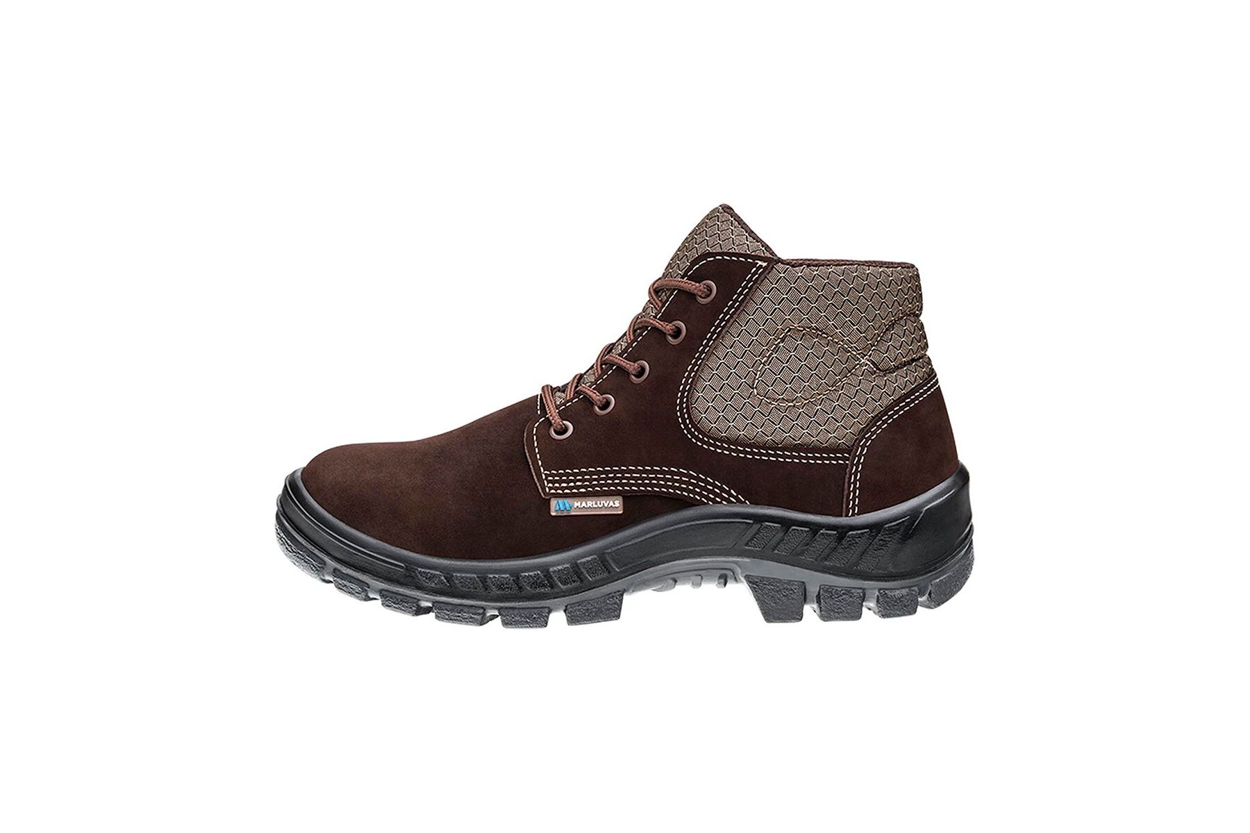 Calçado ocupacional tipo botina, fechamento em cadarço, confeccionado em couro nobuck na cor café curtido ao cromo, forro da gáspea em não tecido, forro lateral em tecido, palmilha de montagem em não tecido resinado fixada pelo sistema strobel, palmilha interna removível, solado de poliuretano bidensidade injetado diretamente no cabedal, biqueira de polipropileno para conformação. Certificado de Aprovação: 45611