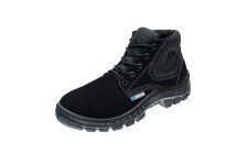 Calçado ocupacional tipo botina, fechamento em cadarço, confeccionado em couro nobuck na cor café curtido ao cromo, forro da gáspea em não tecido, forro lateral em tecido, palmilha de montagem em não tecido resinado fixada pelo sistema strobel, palmilha interna removível, solado de poliuretano bidensidade injetado diretamente no cabedal, biqueira de polipropileno para conformação. Certificado de Aprovação: 45611