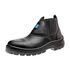 Calçado de segurança, tipo botina, com fechamento em elástico nas laterais, confeccionado em couro curtido ao cromo na cor preta, palmilha de montagem em fibras não metálicas, na cor branca, costurada pelo processo strobel, forro interno em material não tecido na cor cinza, solado em poliuretano bidensidade, injetado diretamente ao cabedal na cor preta, com biqueira de composite. Certificado de Aprovação: 47225