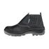 Calçado de segurança tipo botina, fechamento em elástico, confeccionado em couro curtido ao cromo, forro da gáspea em não tecido, forro lateral em tecido, palmilha de montagem em não tecido resinado costurado pelo sistema strobel, palmilha interna removível, biqueira de aço, solado de poliuretano bidensidade injetado diretamente no cabedal, resistente à absorção de energia na região do salto e ao óleo combustível. Certificado de Aprovação: 41429