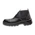 Calçado de segurança, tipo botina, com fechamento em elástico nas laterais, confeccionado em couro curtido ao cromo na cor preta, palmilha de montagem em fibras não metálicas, na cor branca, costurada pelo processo strobel, forro interno em material não tecido na cor cinza, solado em poliuretano bidensidade, injetado diretamente ao cabedal na cor preta, com biqueira de composite. Certificado de Aprovação: 47225