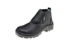 Calçado de segurança tipo botina, fechamento em elástico, confeccionado em couro curtido ao cromo, forro da gáspea em não tecido, forro lateral em tecido, palmilha de montagem em não tecido resinado costurado pelo sistema strobel, palmilha interna removível, biqueira de aço, solado de poliuretano bidensidade injetado diretamente no cabedal, resistente à absorção de energia na região do salto e ao óleo combustível. Certificado de Aprovação: 41429