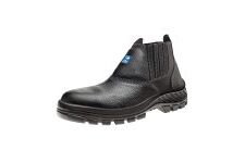 Calçado de segurança, tipo botina, com fechamento em elástico nas laterais, confeccionado em couro curtido ao cromo na cor preta, palmilha de montagem em material sintético na cor branca, costurada pelo processo strobel, forro interno em material não tecido na cor cinza, solado em poliuretano bidensidade injetado diretamente ao cabedal na cor preta, com biqueira de composite. Certificado de Aprovação: 47459