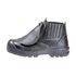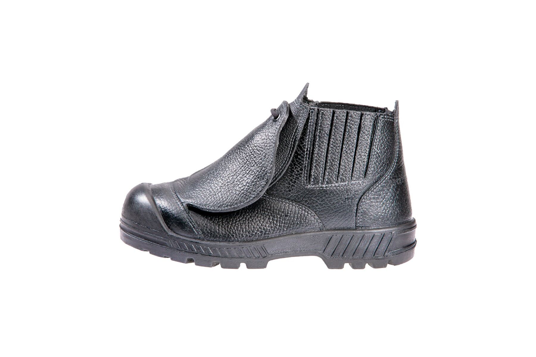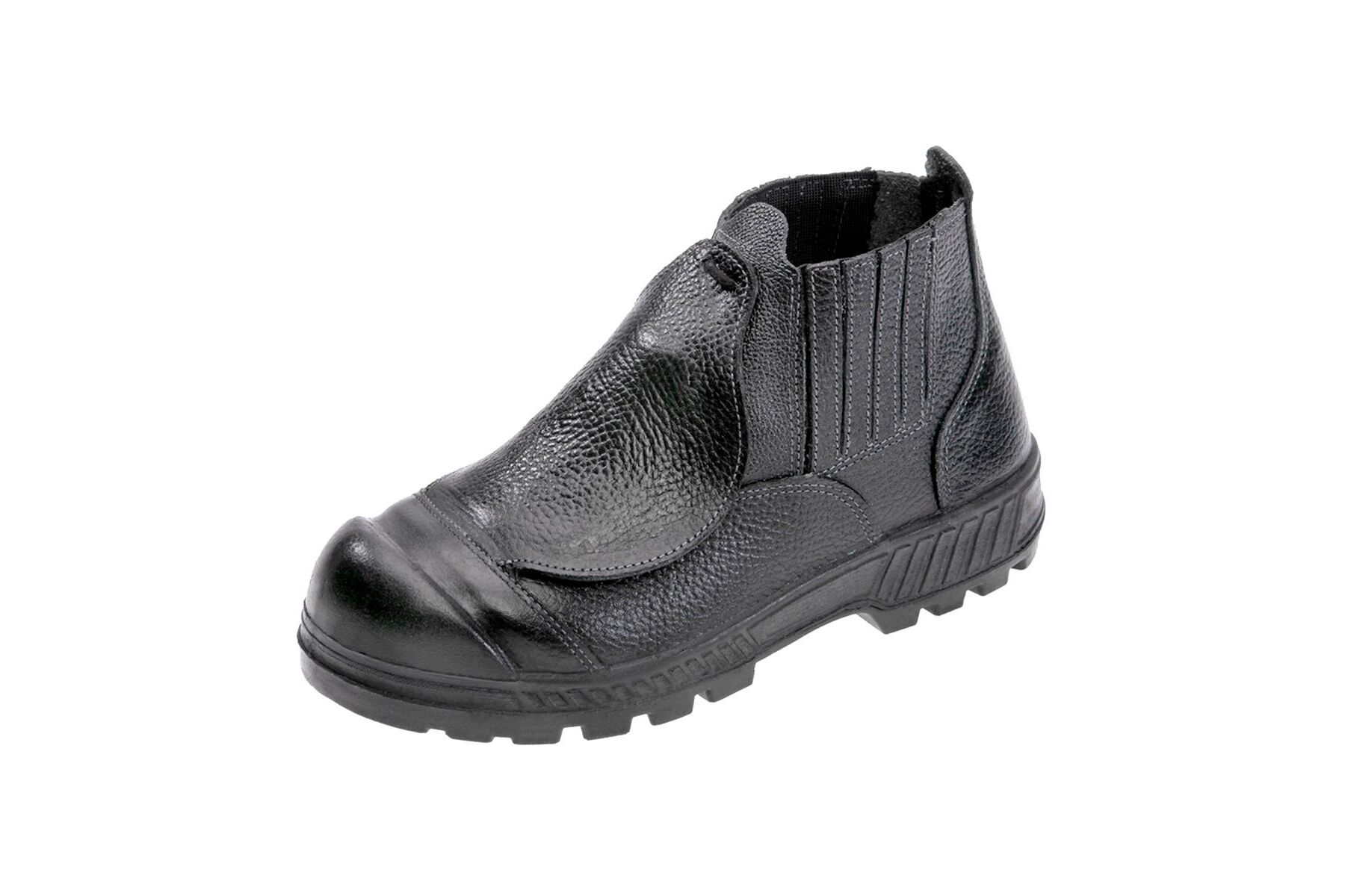 Calçado de segurança, tipo botina, com fechamento em elástico nas laterais, confeccionado em couro curtido ao cromo na cor preta, palmilha de montagem em TNT – tecido não tecido resinado na cor branca, costurada pelo processo strobel, forro interno em TNT tecido não tecido na cor cinza. Solado em poliuretano bidensidade, injetado diretamente ao cabedal na cor preta com absorção de energia no salto e resistência ao óleo combustível, biqueira em aço e protetor de metatarso. Certificado de Aprovação: 43274