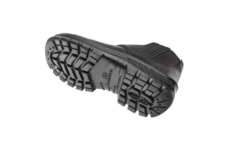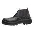 Calçado de segurança, tipo botina, com fechamento em elástico nas laterais, confeccionado em couro curtido ao cromo na cor preta, palmilha de montagem em material sintético na cor branca, costurada pelo processo strobel, forro interno em material não tecido na cor cinza, solado em poliuretano bidensidade injetado diretamente ao cabedal na cor preta, com biqueira de composite. Certificado de Aprovação: 47459