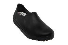 Calçado ocupacional (OB), tipo A (calçado baixo), classe II, confeccionado em material polimérico na cor azul, branca e preta, com solado de borracha vulcanizada antiderrapante de cor bege, com absorção de energia no calcanhar (E), solado resistente ao escorregamento em piso de cerâmica contaminado com detergente e piso de aço contaminado com glicerol (SRC) e calçado inteiro resistente a água (WR). Possui palmilha polimérica interna removível. Certificado de : 44589