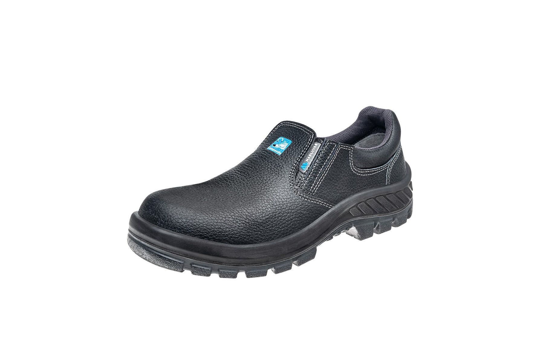 Calçado de segurança tipo sapato, fechamento em elástico nas laterais, confeccionado em couro curtido ao cromo, colarinho em material têxtil, forro da gáspea em não tecido, forro lateral em tecido, palmilha de montagem em material sintético costurada pelo sistema strobel, palmilha interna removível, biqueira de composite, solado de poliuretano bidensidade injetado diretamente no cabedal. Certificado de Aprovação: 46192