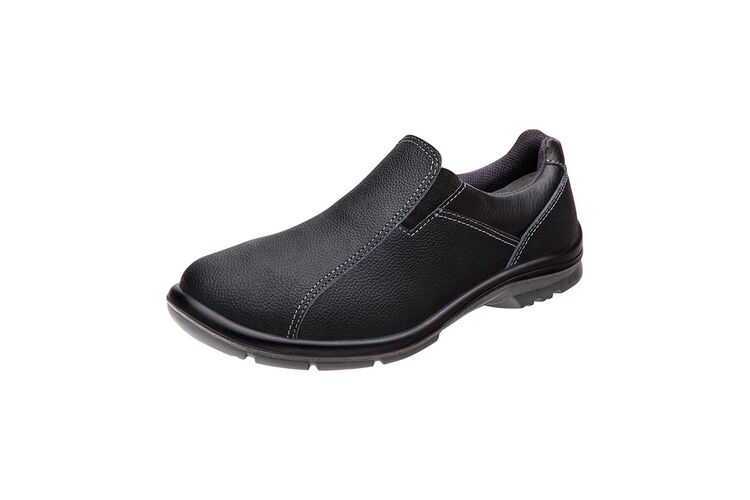 Calçado ocupacional de uso profissional tipo tênis, fechamento em elástico, confeccionado em couro curtido ao cromo, colarinho em material têxtil, forro da gáspea em nãotecido, forro lateral em tecido, palmilha de montagem em não tecido resinado costurada pelo sistema strobel, palmilha interna removível, solado de poliuretano bidensidade injetado diretamente no cabedal, resistente à absorção de energia no calcanhar e ao óleo combustível. Certificado Aprovação: 47110