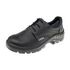 Calçado de segurança tipo sapato, fechamento em cadarço, confeccionado em couro curtido ao cromo, colarinho em material têxtil, forro da gáspea em não tecido, forro lateral em tecido, palmilha de montagem em nãotecido resinado costurado pelo sistema strobel, palmilha interna removível, biqueira de aço, solado de poliuretano bidensidade injetado diretamente no cabedal, resistente à absorção de energia na região do salto e ao óleo combustível.Certificado de Aprovação: 41426