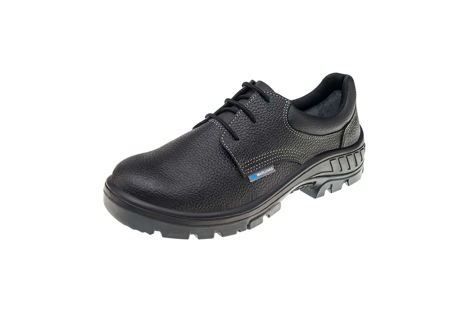 Calçado de segurança tipo sapato, fechamento em cadarço, confeccionado em couro curtido ao cromo, colarinho em material têxtil, forro da gáspea em não tecido, forro lateral em tecido, palmilha de montagem em nãotecido resinado costurado pelo sistema strobel, palmilha interna removível, biqueira de aço, solado de poliuretano bidensidade injetado diretamente no cabedal, resistente à absorção de energia na região do salto e ao óleo combustível.Certificado de Aprovação: 41426