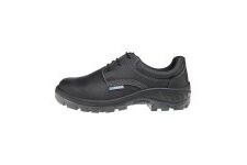 Calçado ocupacional tipo sapato, fechamento em cadarço, confeccionado em couro curtido ao cromo, colarinho em material têxtil, forro da gáspea em não tecido, forro lateral em tecido, palmilha de montagem em não tecido resinado costurado pelo sistema strobel, palmilha interna removível, biqueira de polipropileno para conformação, solado de poliuretano bidensidade injetado diretamente no cabedal, resistente à absorção de energia na região do salto e ao óleo combustível. Certificado de Aprovação: 41424