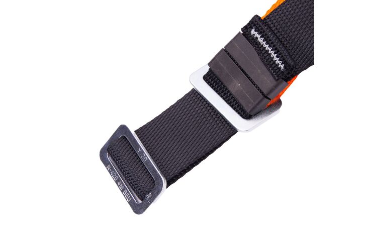 Descrição: Cinturão de segurança, tipo paraquedista, confeccionado em fita de poliéster multifilamento de 45 mm e fita secundária de poliéster de 25 mm. Possui um ponto de conexão, sendo uma meia argola dorsal em aço. Possui três fivelas duplas em aço, sendo duas para regulagem das coxas e uma para regulagem na cintura. O cinturão de segurança deve ser usado conjugado com o talabarte e trava quedas compatíveis, conforme indicação do CA. Certificado de Aprovação: 35509