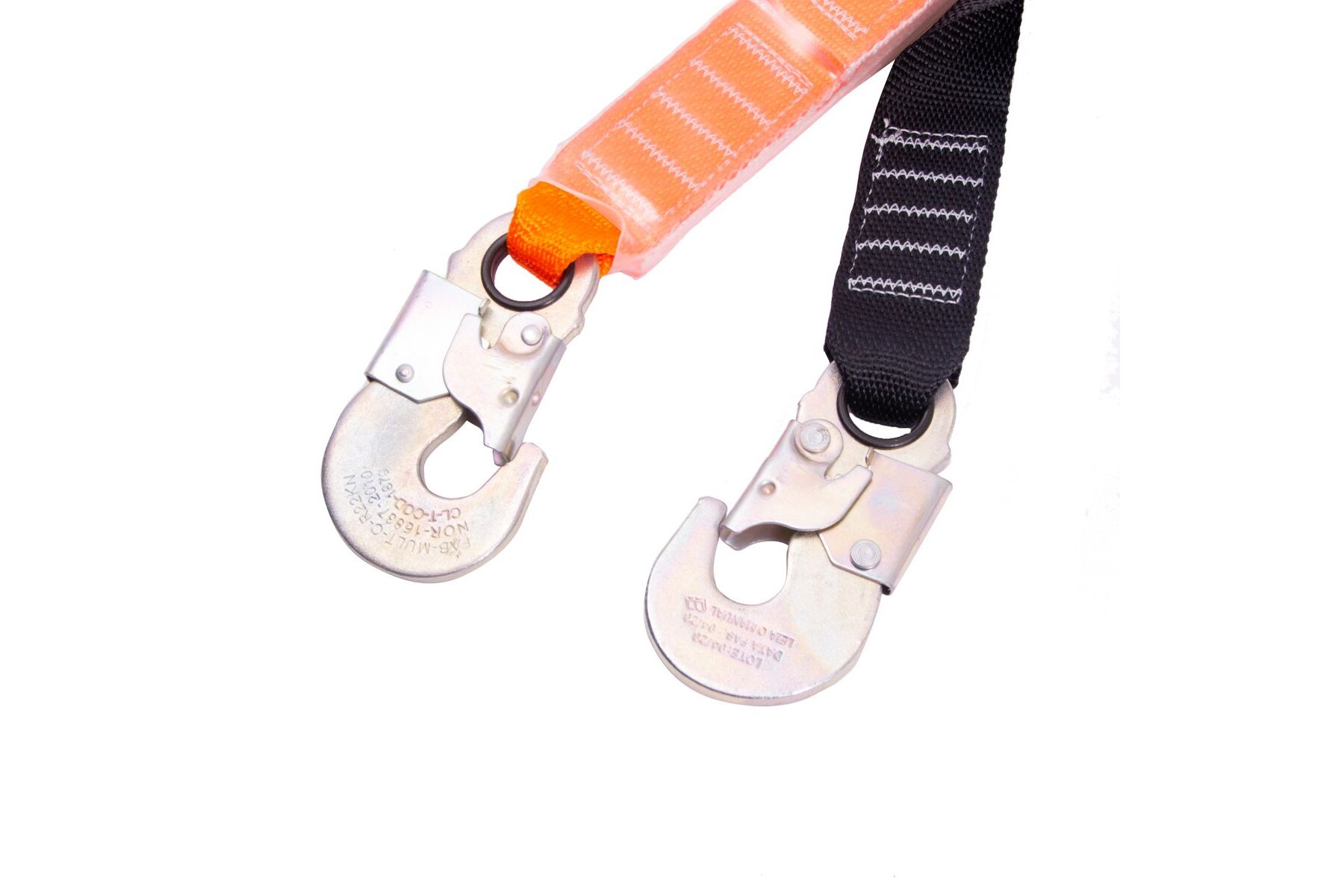 Talabarte em fita com absorvedor de energia e dois ganchos classe T (Abertura de 18mm).