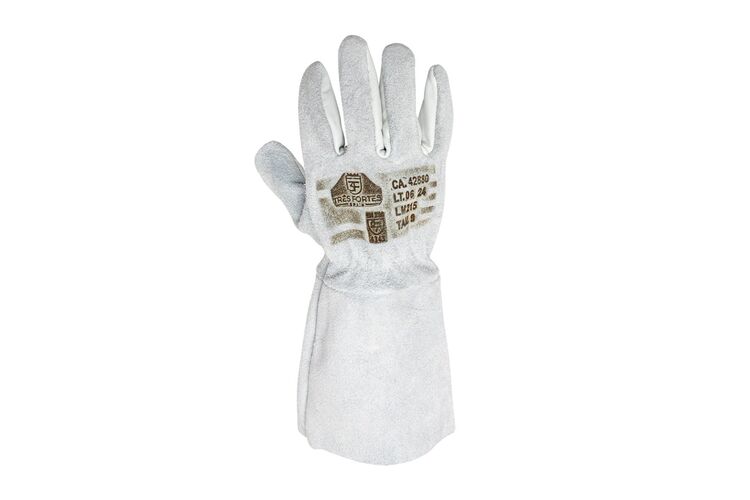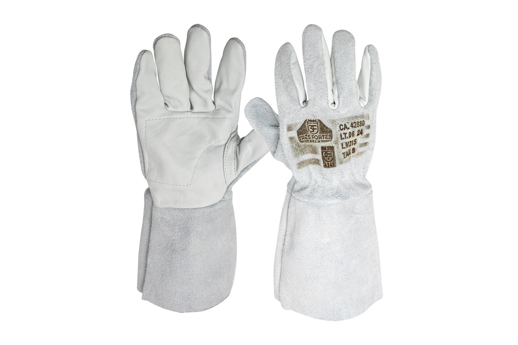 Luva Mista Três Fortes Vaqueta Raspa com Reforco Punho 15cm