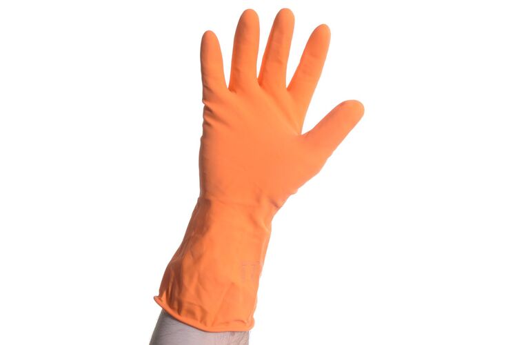 Luva de segurança confeccionada em látex de borracha natural: forrada internamente com flocos de algodão: com bainha. Certificado de Aprovação: 6110