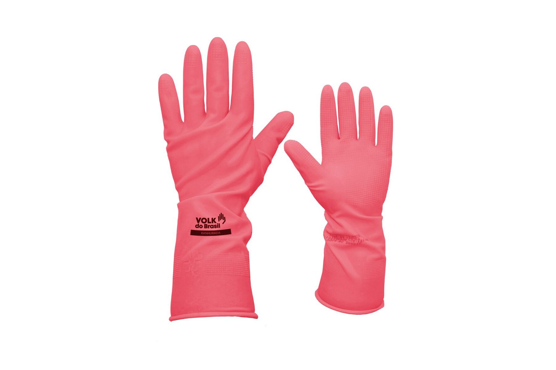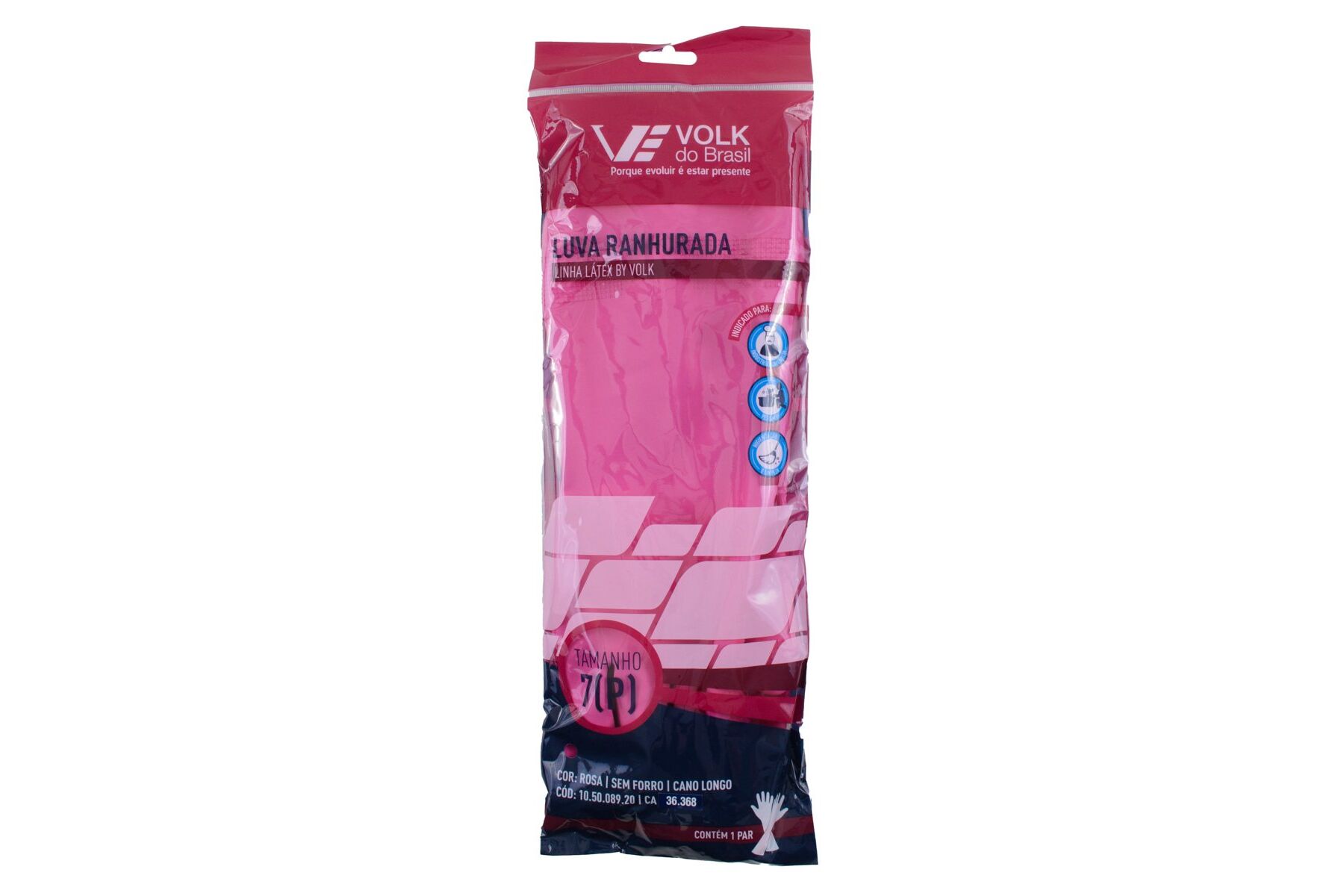 Luva de Segurança Látex Ranhurada Punho Longo Rosa P Volk