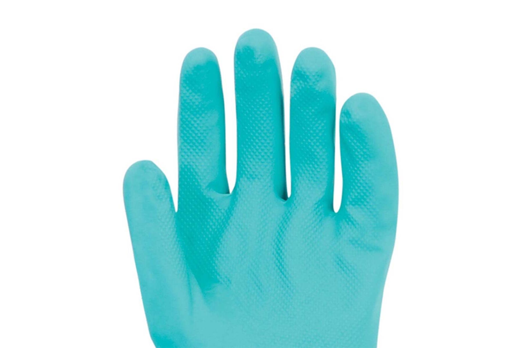Descrição: Luva de segurança confeccionada em nitrila, revestimento interno em flocos de algodão e relevo antiderrapante na face palmar e ponta dos dedos.
