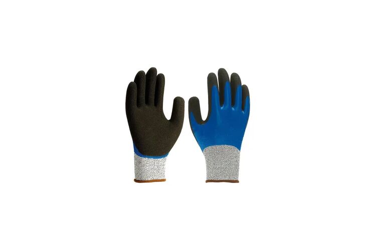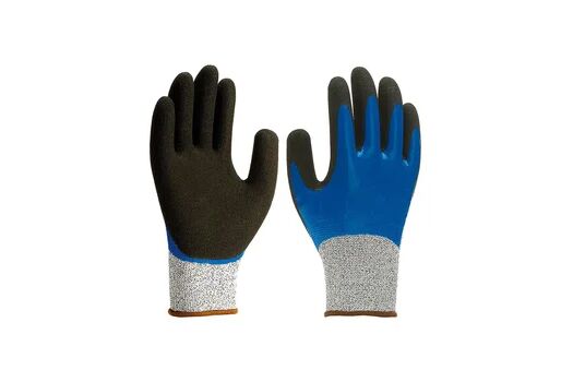 Luva de Segurança confeccionada em fibras sintéticas, polietileno de alto peso molecular (HPPE), 13 gauge, revestida totalmente em Nitrílica lisa na palma da mão, ponta dos dedos e dorso com uma segunda camada de Nitrílica arenosa (sandy) na palma da mão e nas pontas dos dedos, punho com inserção de fibras elásticas e acabamento em fibras sintéticas.