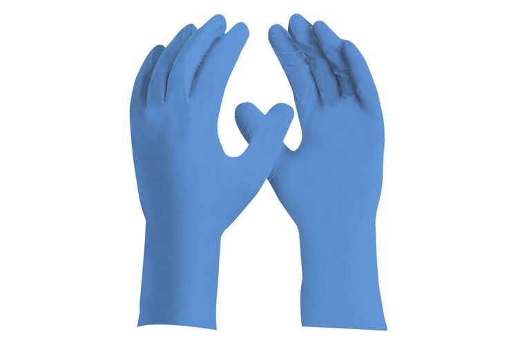 Luva 100% borracha nitrílica, comprimento de 24 cm, sem talco e espessura de 0,10mm. CA: 42979