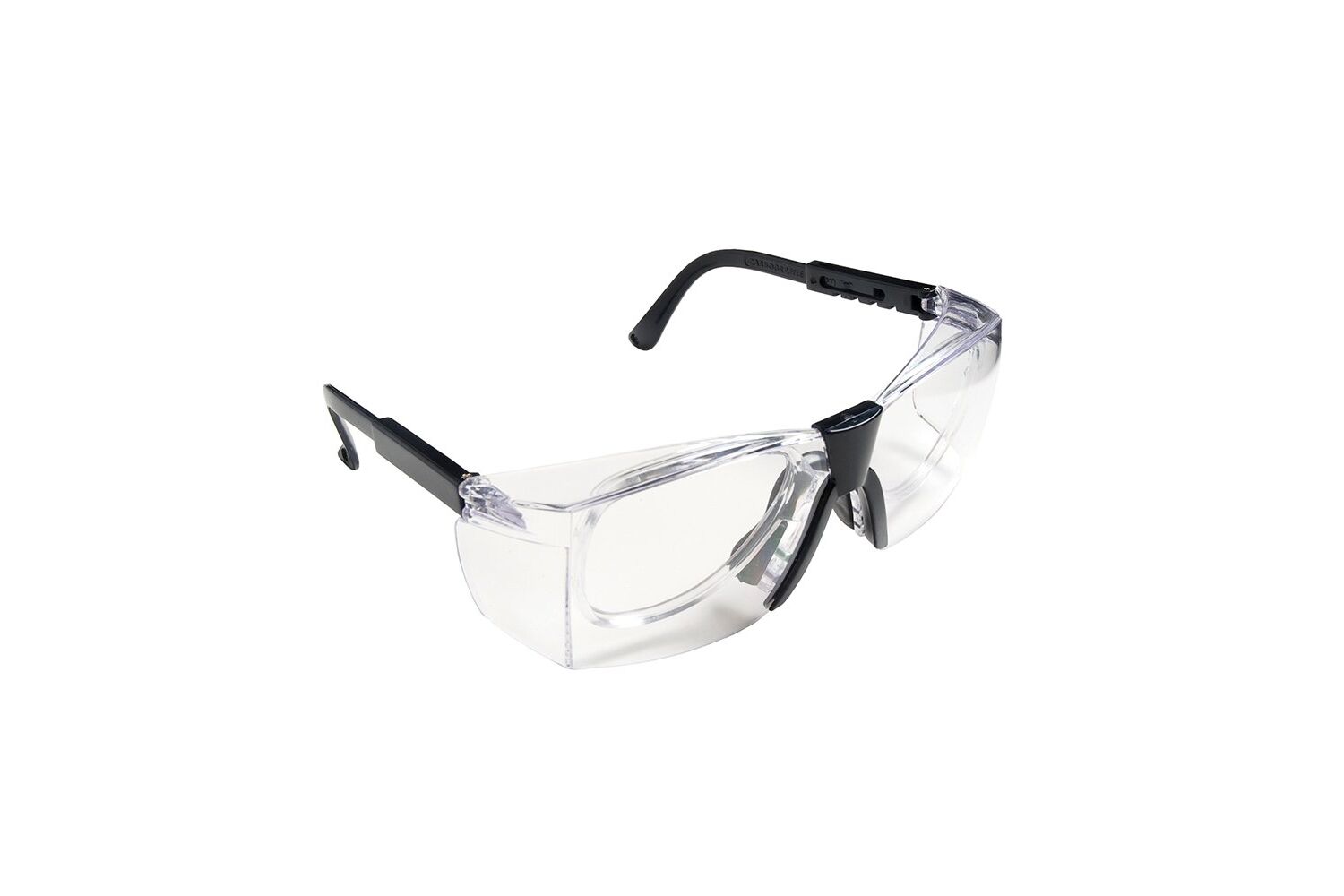 Óculos de segurança com armação e visor confeccionados em uma única peça de policarbonato incolor e cinza com proteção lateral e meia proteção superior injetada na mesma peça. Peça de náilon preto em formato de "V" com canaleta é encaixada ao visor e possui quatro pinos para encaixe de apoio nasal fabricado em PVC preto. As hastes são confeccionadas em náilon e são constituídas de duas peças: semi-haste vazada com uma das extremidades fixadas ao visor por meio de parafuso metálico e semi-haste vazada com um pino em uma das extremidades que se encaixa na semi-haste anterior e permite o ajuste de tamanho. Opcionalmente, um clip confeccionado em policarbonato incolor com duas oculares pode ser encaixado aos óculos para utilização de lentes corretivas.. Certificado de Aprovação: 48030