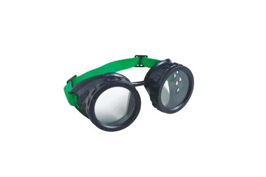 Óculos de segurança, constituídos de duas oculares em formato de concha, unidas por uma ponte composta de uma corrente recoberta com uma capa plástica e tirante elástico para ajuste. As oculares, de 50 mm de diâmetro, possuem anéis de retentores rosqueáveis que permitem a colocação dos filtros de luz de policarbonato verde de tonalidade 5 e das lentes de cobertura de policarbonato incolor. Filtros de Luz não incluidos, devem ser adquiridos separadamente. Certificado de Aprovação: 3135