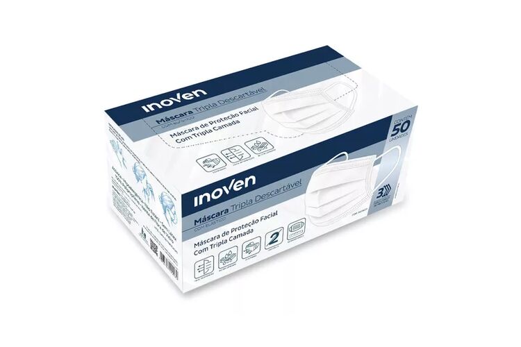 Máscara Tripla c/ Elástico Branca 50un - Inoven