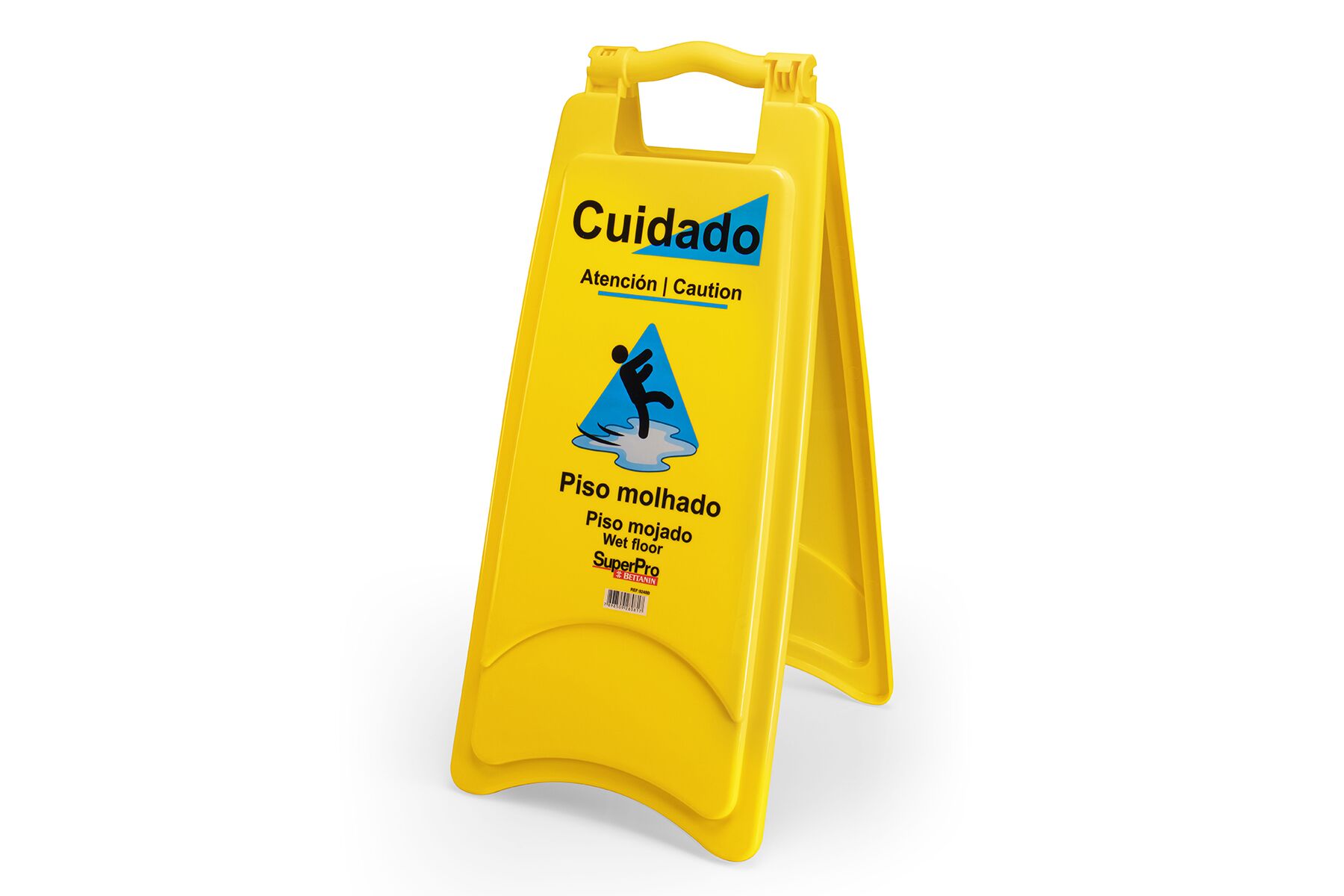 Placa de sinalização com identificação de "Piso Molhado" deve ser utilizada para a prevenção de acidentes. As placas sinalizadoras são obrigatórias em diversos países e municípios brasileiros como equipamentos de segurança, pois estudos e estatísticas comprovam que os riscos inerentes às ações de manutenção e limpeza foram altamente reduzidos, preservando a integridade das pessoas, equipamentos e instalações e, prevenindo prejuízos indesejados quando estes equipamentos são utilizados. Medidas: 67x27,5cm