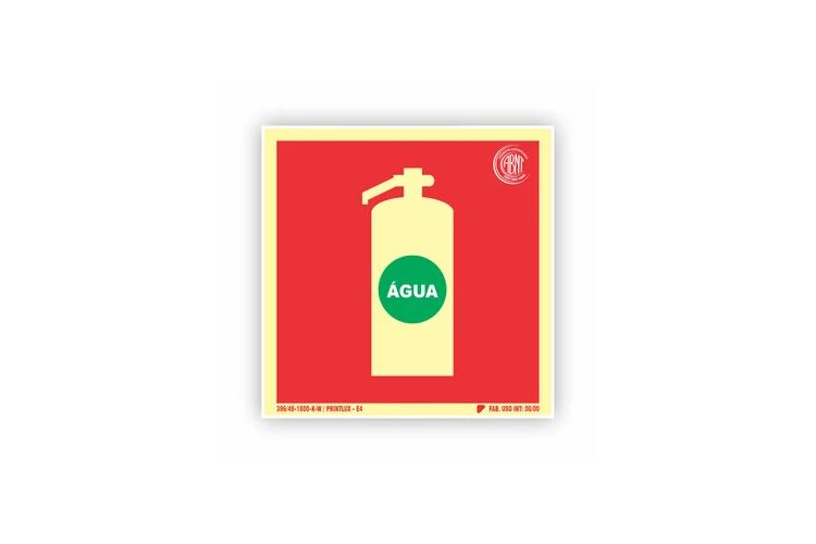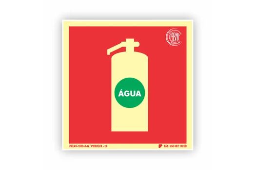 Placa de Sinalização E5A EXTINTOR ÁGUA, confeccionada em PVC expandido 2mm, fotoluminescente, Impressão por processo de Silk Screen. Tamanho 15 x 15