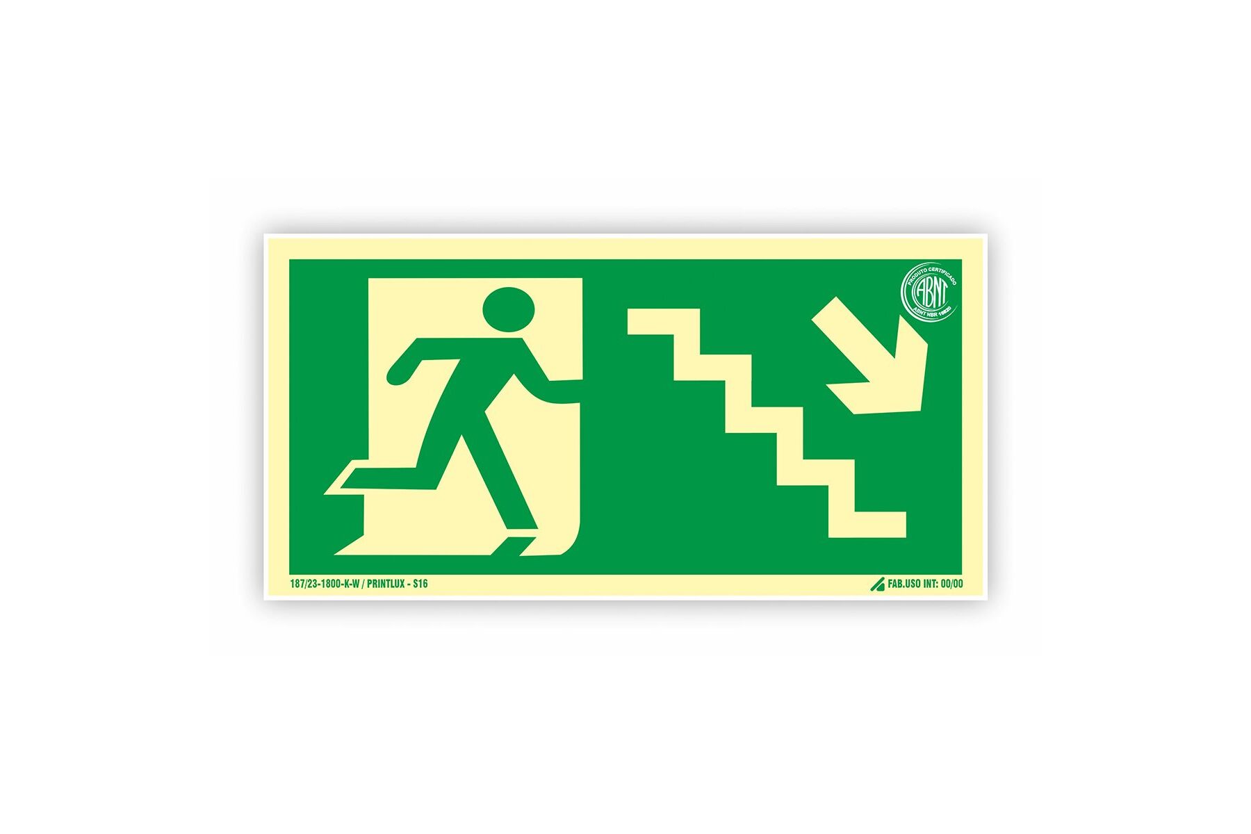 Placa Sinalização Fotoluminescente S8 Escada Desce Direita