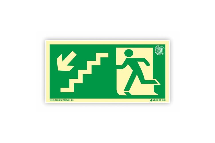 Placa Sinalização Fotoluminescente S9 Escada Desce Esquerda