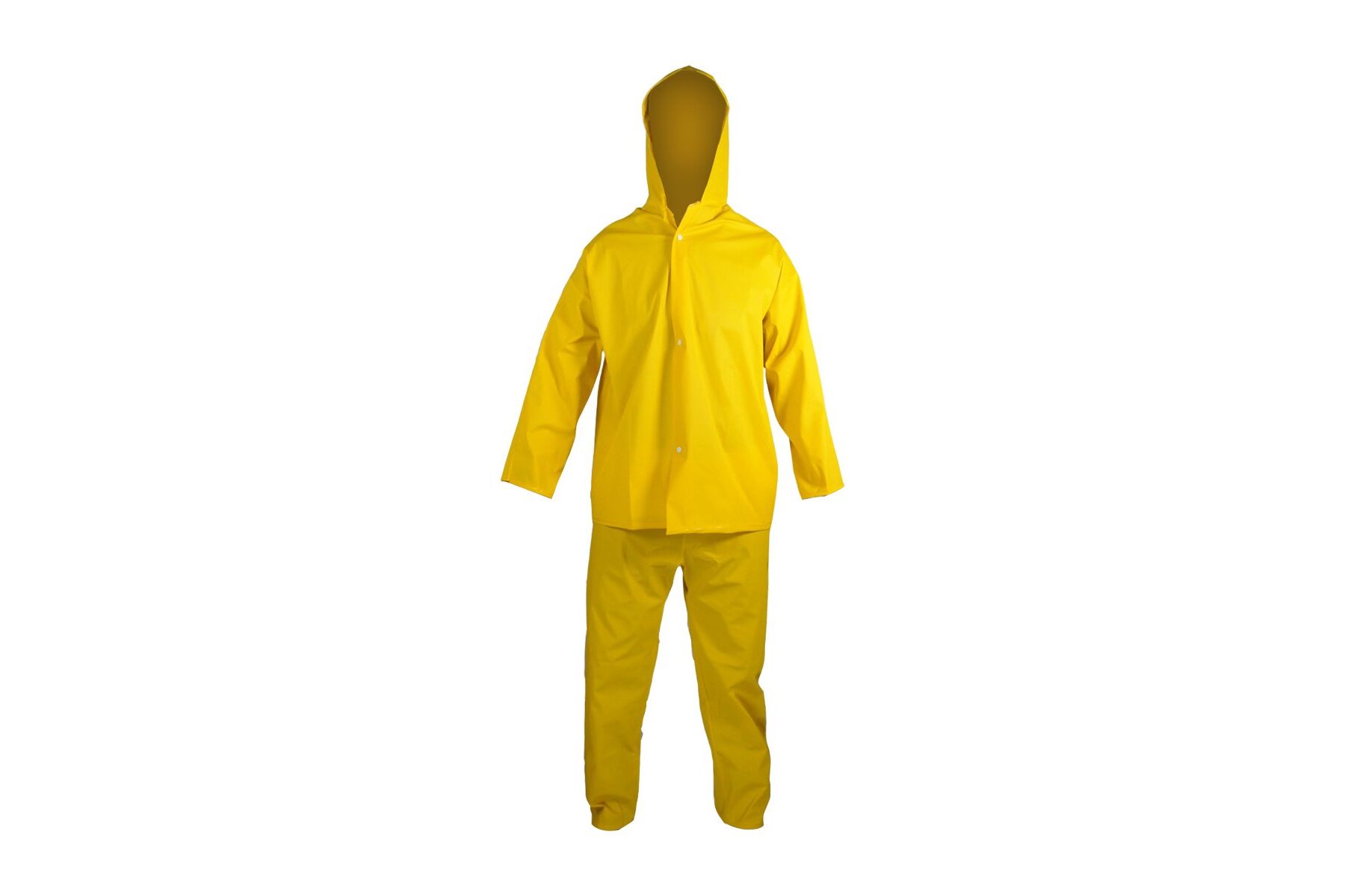 Descrição: Blusão de segurança confeccionado em tecido sintético plastificado com PVC, capuz conjugado, com mangas longas, fechamento frontal através de botões de pressão e costura através de solda eletrônica. Certificado de Aprovação: 28481