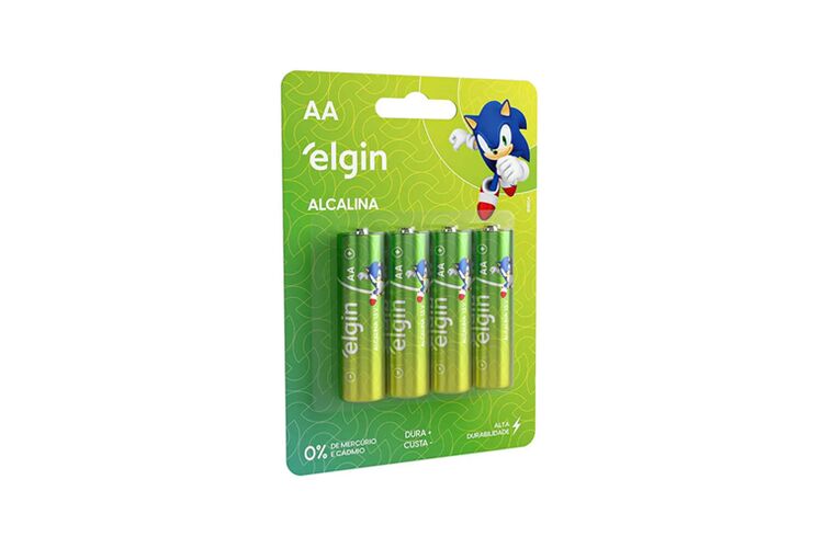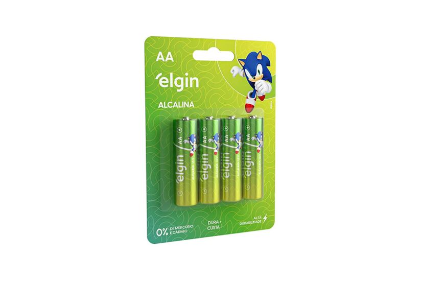 As pilhas Alcalinas AA Elgin do mascote Sonic são ideais para brinquedos, controle remotos, lanternas e outros aparelhos que requerem descargas de energia rápidas e fortes. Elas foram aprovadas em todos os quesitos e têm ótima relação custo/benefício, você economiza e ainda conta com pilhas de alta qualidade. Entre 11 marcas de pilhas do mercado avaliadas em testes do INMETRO, as pilhas Elgin apresentaram um resultado excelente na relação custo por hora útil. Além disso, elas são testadas periodicamente por laboratórios credenciados pelo INMETRO, para garantir a qualidade e conformidade com a resolução Conama 401. Embalagem com 4 pilhas alcalinas tipo AA