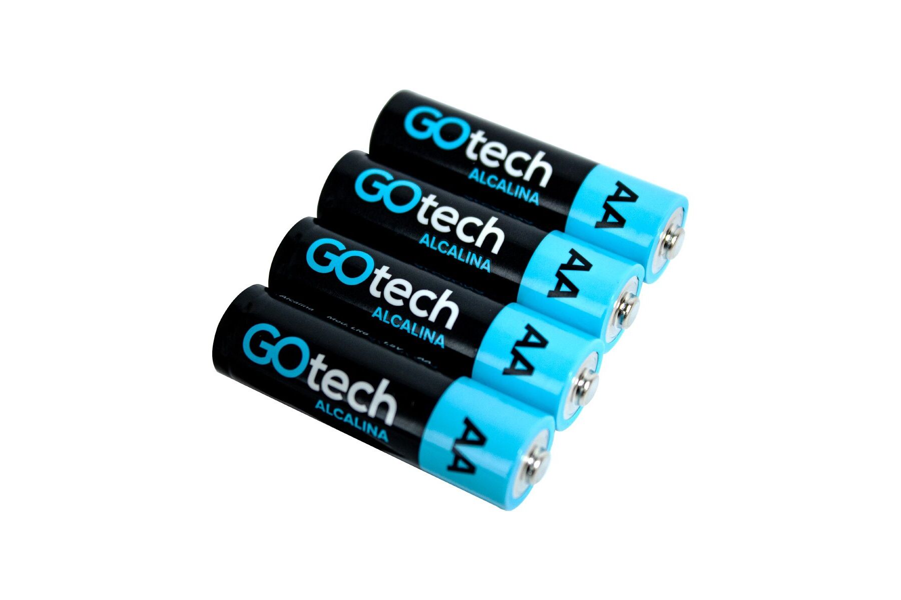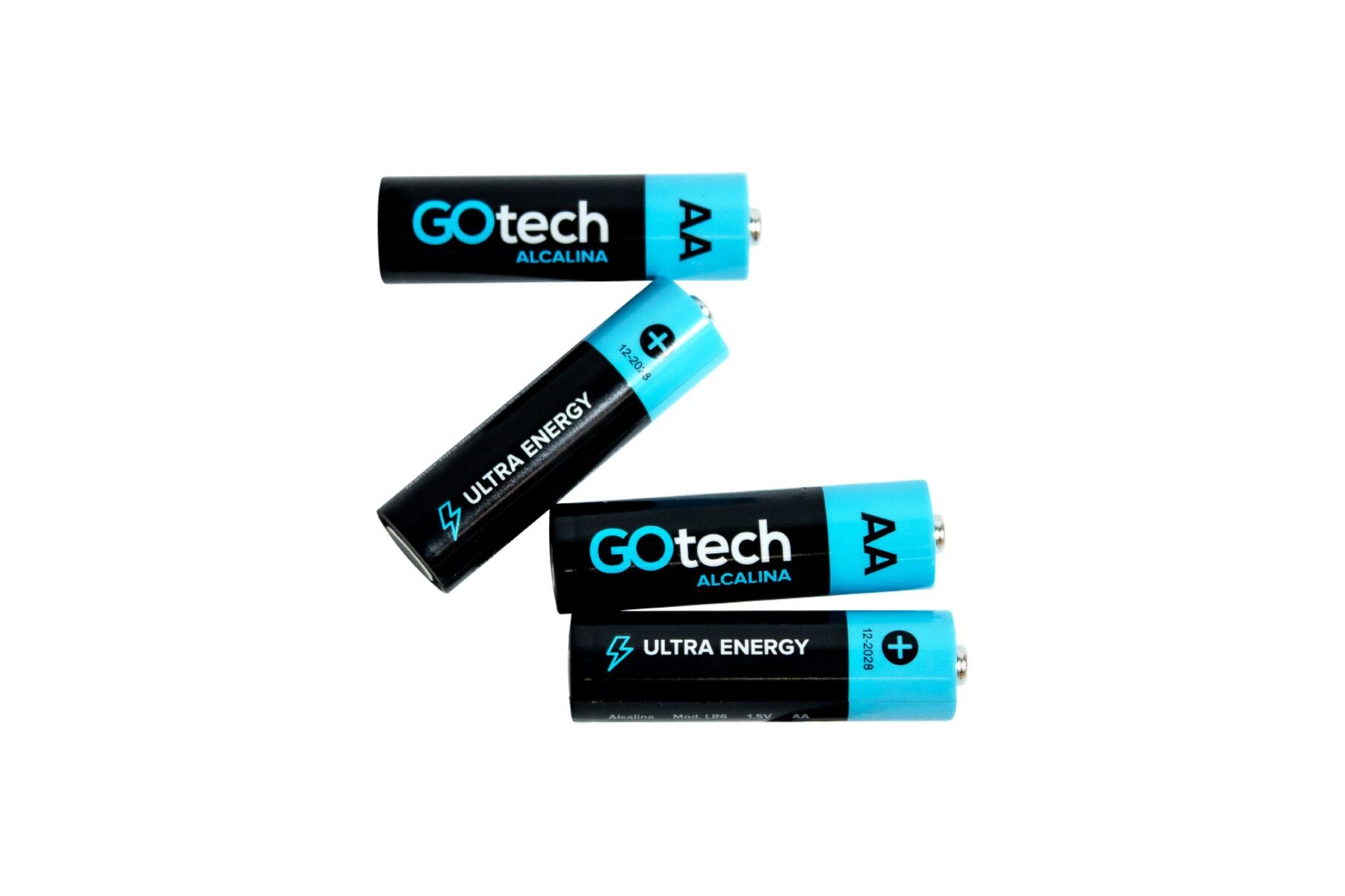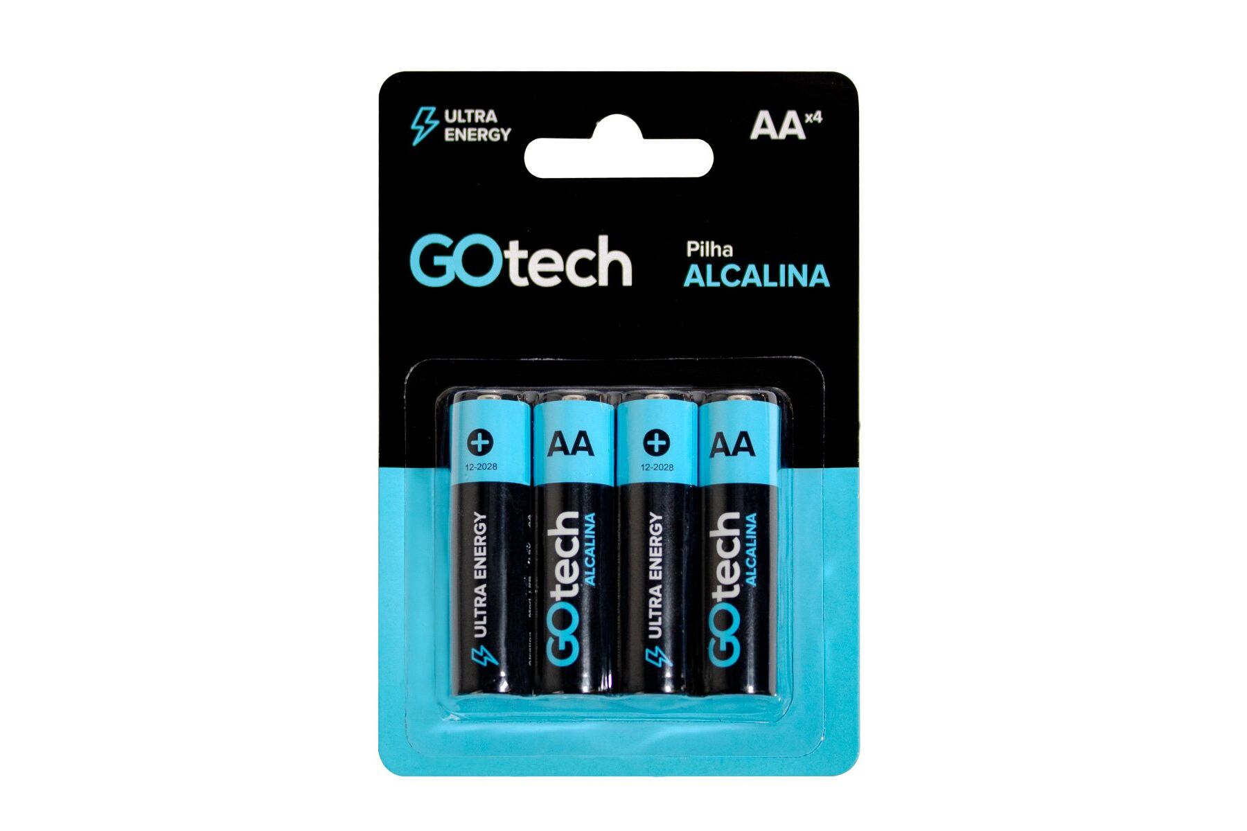 Características: - Marca: Go Tech - Modelo: LR6 Especificações Técnicas: - Tipo: Alcalina - Tamanho: AA (Pequena) - Voltagem: 1,5V Cartela: - Contém 04 unidades. Conteúdo da embalagem: - Pilha Alcalina AA 1,5V LR6 MARCA (cartela com 4 Unid.)