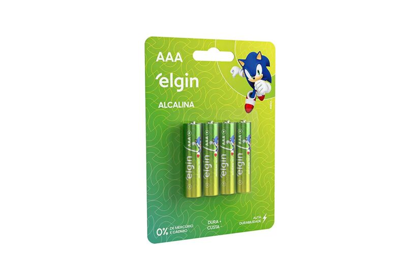 As pilhas alcalinas AAA Elgin são ideais para brinquedos, controle remotos, lanternas e outros aparelhos que requerem descargas de energia rápidas e fortes. Elas foram aprovadas em todos os quesitos e têm ótima relação custo/benefício, você economiza e ainda conta com pilhas de alta qualidade. Entre 11 marcas de pilhas do mercado avaliadas em testes do INMETRO, as pilhas Elgin apresentaram um resultado excelente na relação custo por hora útil. Além disso, elas são testadas periodicamente por laboratórios credenciados pelo INMETRO, para garantir a qualidade e conformidade com a resolução Conama 401. Embalagem com 4 pilhas alcalinas tipo AAA