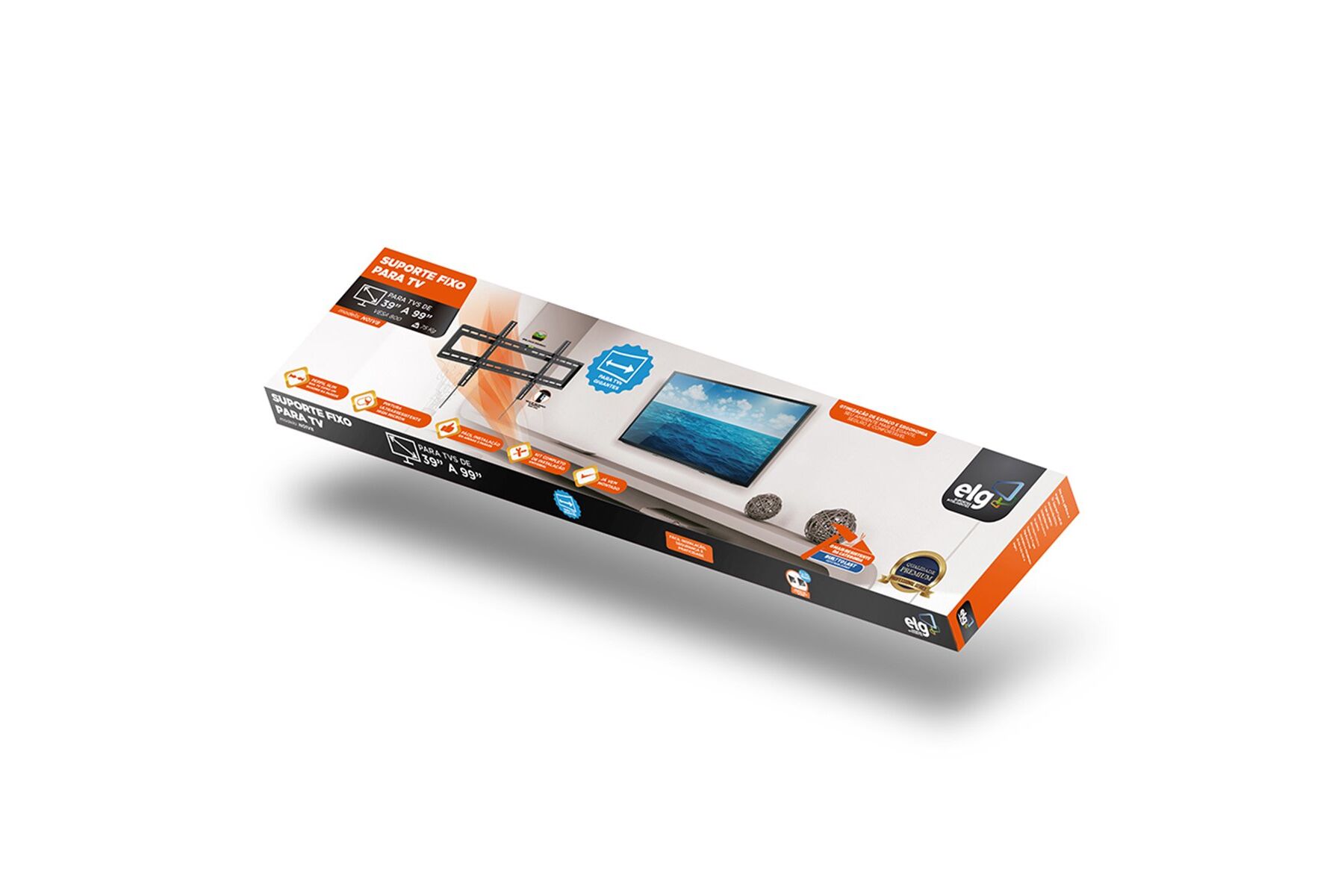 Indicado para TVs planas e curvas com peso máximo de 75 Kg, largura superior a 90 cm e compatíveis com padrão de fixação VESA (horizontal x vertical) 200x200 a 800x400 mm normalmente encontrado em televisores de 39 a 99 polegadas. De fácil instalação, possui sistema de engate rápido com trava de segurança automática tipo clic (Easylock) e tiras de nylon para destravar as hastes verticais, possibilitando desprender a TV do suporte com maior facilidade. Com distância mínima da parede de 2,8 cm, para deixar sua TV como um quadro decorando o ambiente. O kit de acessórios acompanha espaçadores (uso opcional) para aumentar a distância da parede em até 4.3 cm, possibilitando o acesso as saídas de áudio e vídeo quando situados atrás da TV. O Suporte para TV Fixo N01V8 é desenvolvido em aço carbono com tratamento anticorrosão e pintura epóxi eletrostática de alta resistência, aliando durabilidade, segurança e excelente acabamento. Possui múltiplos pontos de fixação, nível bolha integrado e garantia de 03 anos.Elg Soluções Inteligentes Características Técnicas