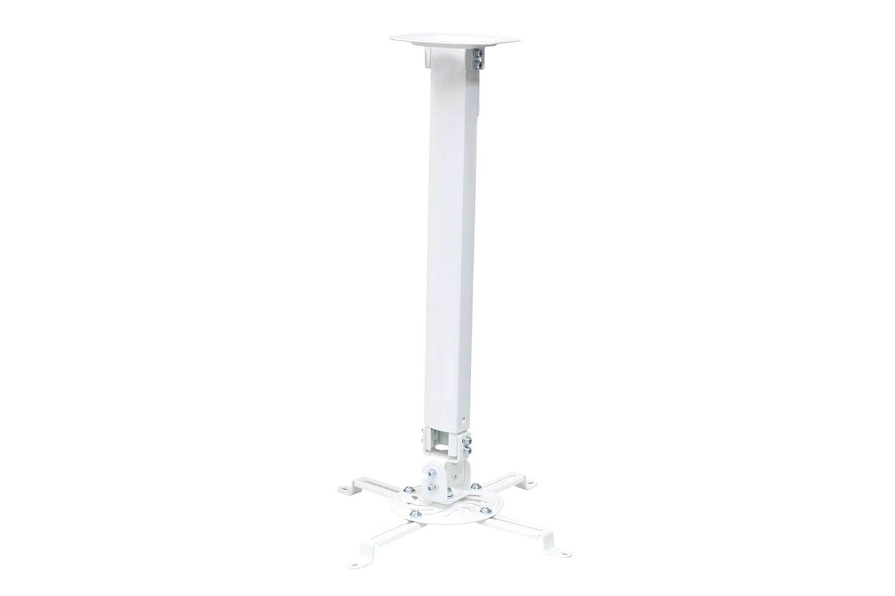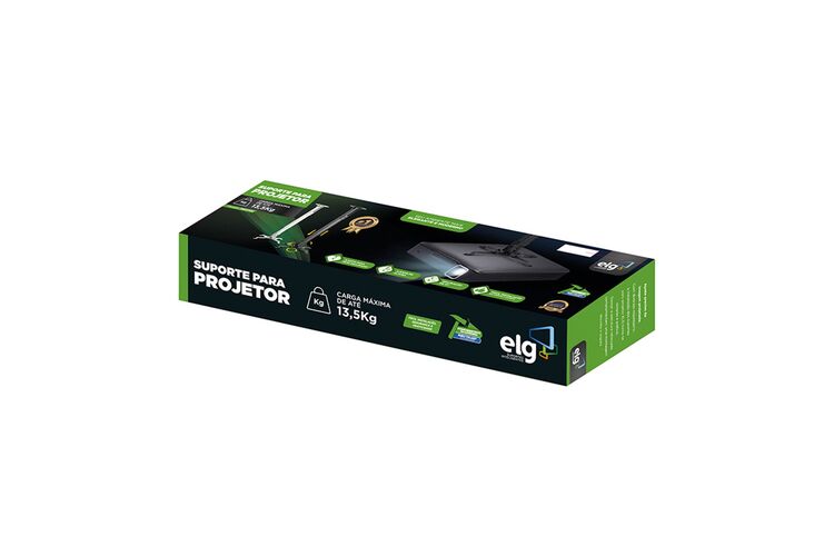 "Indicado para instalação em tetos de alvenaria ou vigas de madeira e compatível com projetores com até 13,5 Kg que possuam 3 ou 4 pontos de fixação roscados. O afastamento entre os pontos roscados presentes no projetor deve ser entre 54 e 320 mm (diâmetro) para alcançar as hastes do suporte. A base possui regulagem de altura com distância mínima do teto até o projetor de 54,5 cm e máxima de 90 cm. Ajuste preciso da imagem projetada! Possui várias opções de ajustes, como rotação de 360°, ajuste de ângulo vertical e horizontal de +15 a -15° e ajuste para teto inclinado. Produzido em aço carbono com tratamento anticorrosão e pintura epóxi eletrostática de alta resistência, aliando durabilidade, segurança e excelente acabamento.