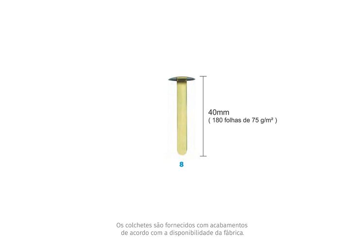 Colchete nº 8: cabeça 12mm, comprimento 40mm: produzido em chapa de aço de baixo carbono revestido.