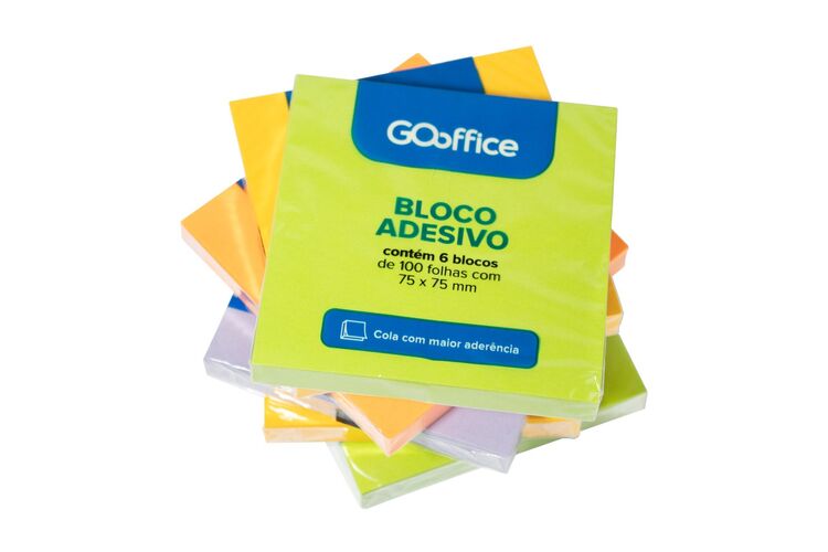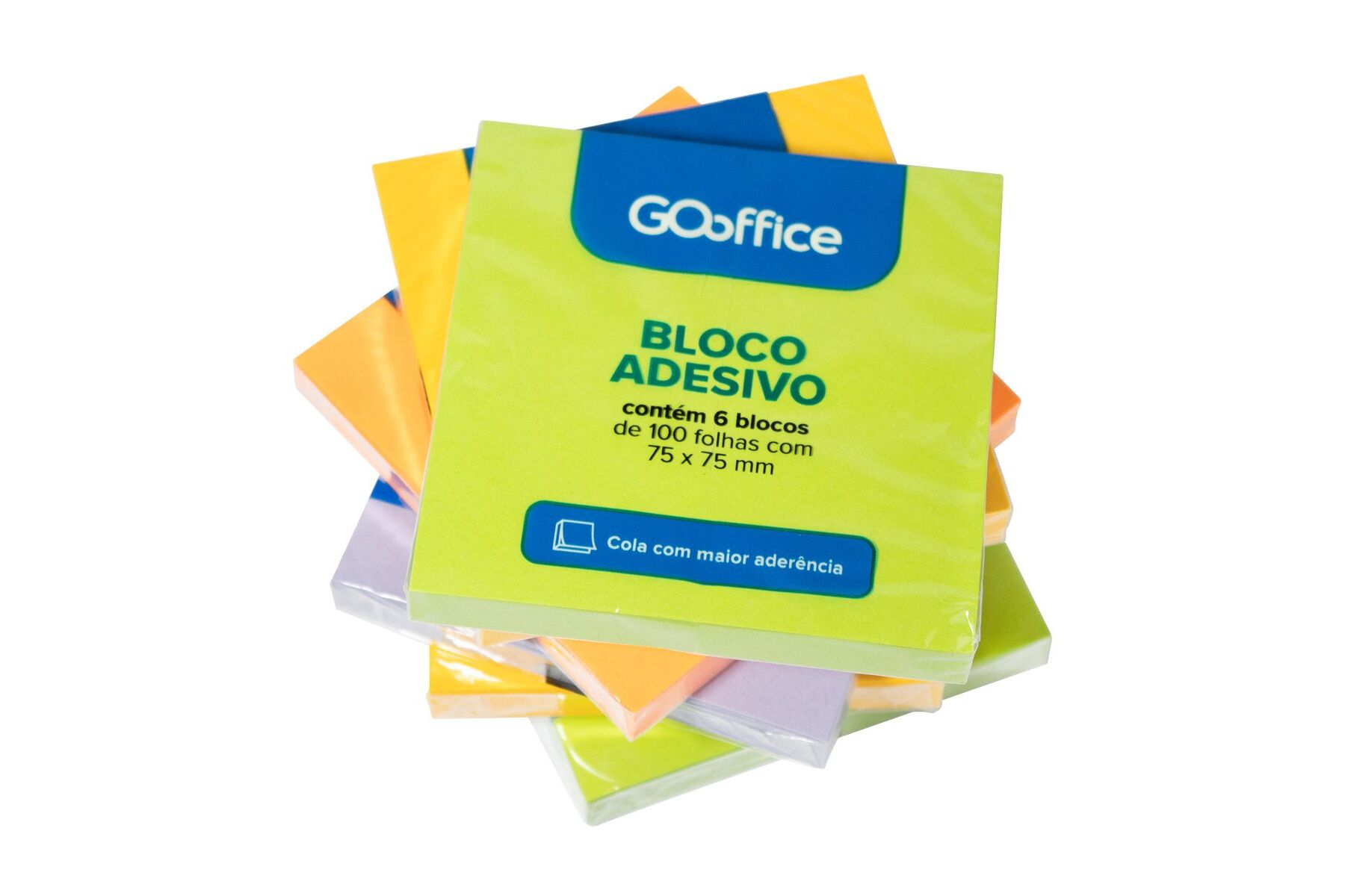 Bloco Adesivo Cores Sortidas 75 x 75 mm 6 blocos de 100 folhas Go Office