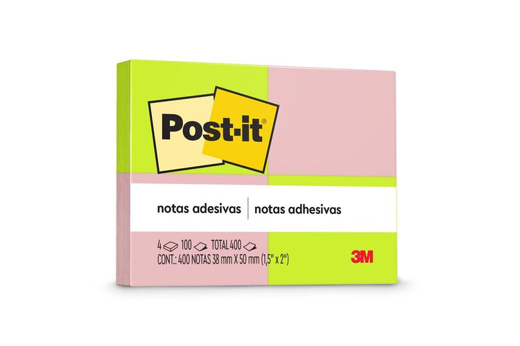 Post-it® 4 Blocos 38x50mm 100 Folhas cada 2 Cores Neon 3M